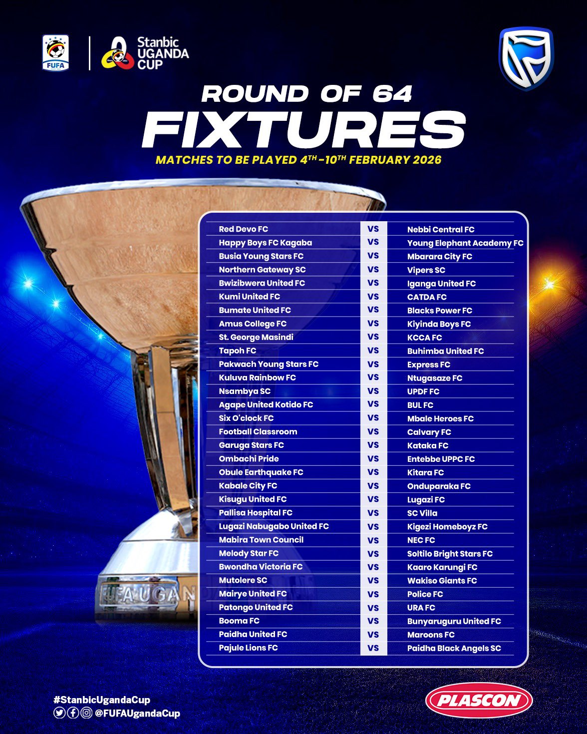 Here is the full list of Round of 64 Draw fixtures for West Nile clubs.